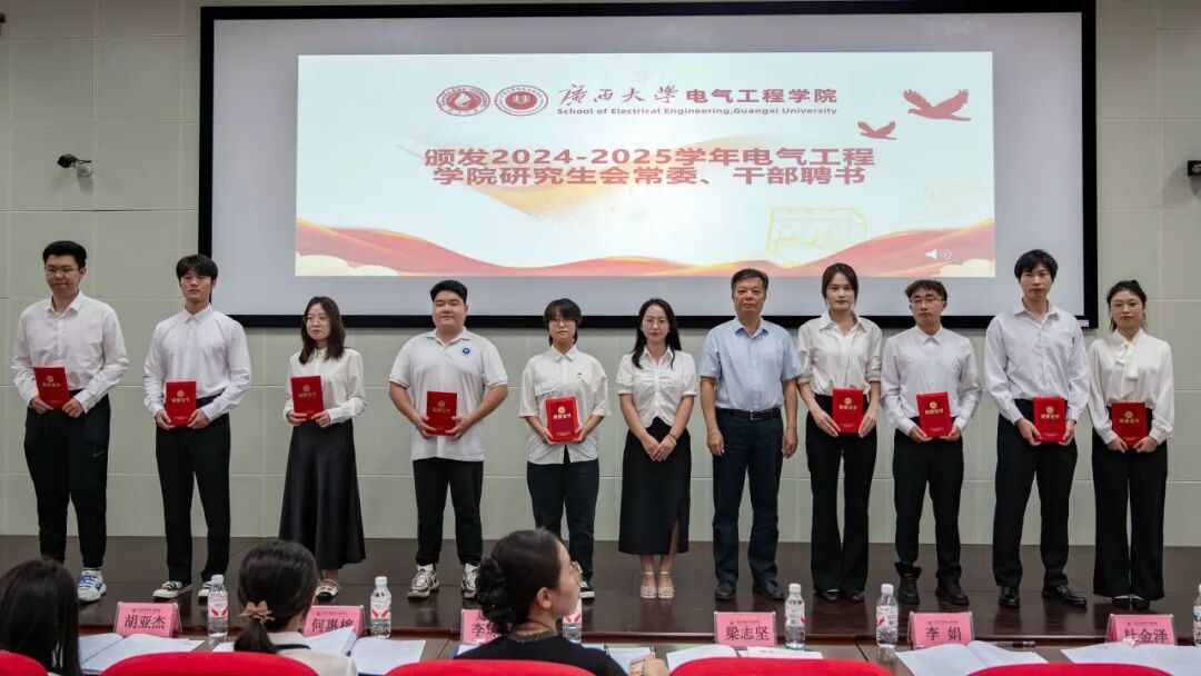 9月27日上午,开云kaiyun登录入口第二十二次研究生代表大会、第二十四次学生代表大会在六一阶教室举行。学院党委书记梁志坚,党委副书记、纪委书记李琼莹,团委副书记李娟,团委委员何惠榕、胡亚杰,辅导员孙语敏、聂奇、杜金泽,校研究生会代表、校学生会代表、兄弟学院代表以及学院各班级学生代表参加会议。 大会在庄严的国歌声中开幕。 全体奏唱国歌 师生致辞:明确方向,寄予厚望 学院党委书记梁志坚在会上讲话,充分肯定了学院研究生会和学生会上一年度的工作成果,并对全体同学及新一届研究生会、学生会提出三点期望:一是锚定国家需求,涵养家国情怀;二是深耕专业领域,锤炼创新能力;三是坚守服务初心,锻造先锋队伍。他鼓励同学们将个人理想融入民族复兴征程,为学院“双一流”建设贡献青春力量。 学院党委书记梁志坚致开幕词 校研究生会代表吴华昊、校学生会代表张与铨分别致辞,对电气工程学院研究生会、学生会的工作表示肯定,并期望新一届成员能够继往开来,加强协作,共同服务好广大同学。 校研究生会代表致辞 校学生会代表致辞 审议与选举:规范流程,履行职责 会议期间,全体代表审议并通过了相关工作筹备报告、代表资格审查报告、选举办法及大会议程等。在选举环节,与会代表以投票方式选举产生了学院第二十二届研究生会主席团成员、第二十四届学生会主席团成员及学生代表大会常任代表。选举过程严格规范,公平公正。 各班级代表投票 表彰与倡议:承前启后,担当使命 会上,学院领导老师们为上一届研究生会、学生会常委及干部颁发了聘书,对他们在学院发展中作出的贡献表示肯定。新当选的第二十二届研究生会主席团成员李涵嘉代表新一届成员向全院同学发出倡议,号召大家坚定理想信念、掌握真才实学、锤炼品德修为,担当时代重任。 学院领导颁发证书并合影留念 李涵嘉宣读倡议 圆满闭幕:开启新程,贡献青春力量 学院党委副书记、纪委书记李琼莹致闭幕词。她对大会的成功召开表示祝贺,并希望同学们以此次大会为新起点,团结奋进,共同推动学院各项事业高质量发展。 学院党委副书记、纪委书记李琼莹致闭幕词 学院领导老师与同学们合照 至此,开云kaiyun登录入口第二十二次研究生代表大会、第二十四次学生代表大会顺利完成各项议程,圆满闭幕。新一届研究生会、学生会将秉持全心全意为同学服务的宗旨,围绕学院中心工作,团结带领全院学生为成长成才和学院发展贡献力量。