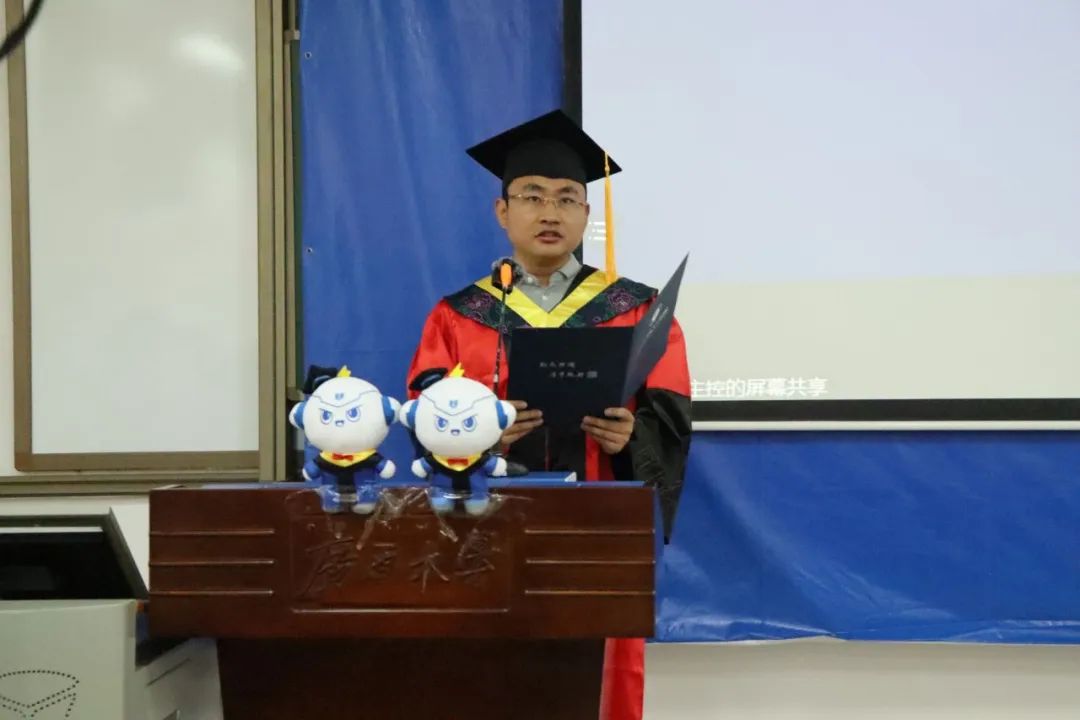 在学院分会场,学院对获得2022届“广西壮族自治区普通高等教育优秀大学毕业生”的10名学生进行表彰,由院党委书记梁志坚为获奖代表颁奖。