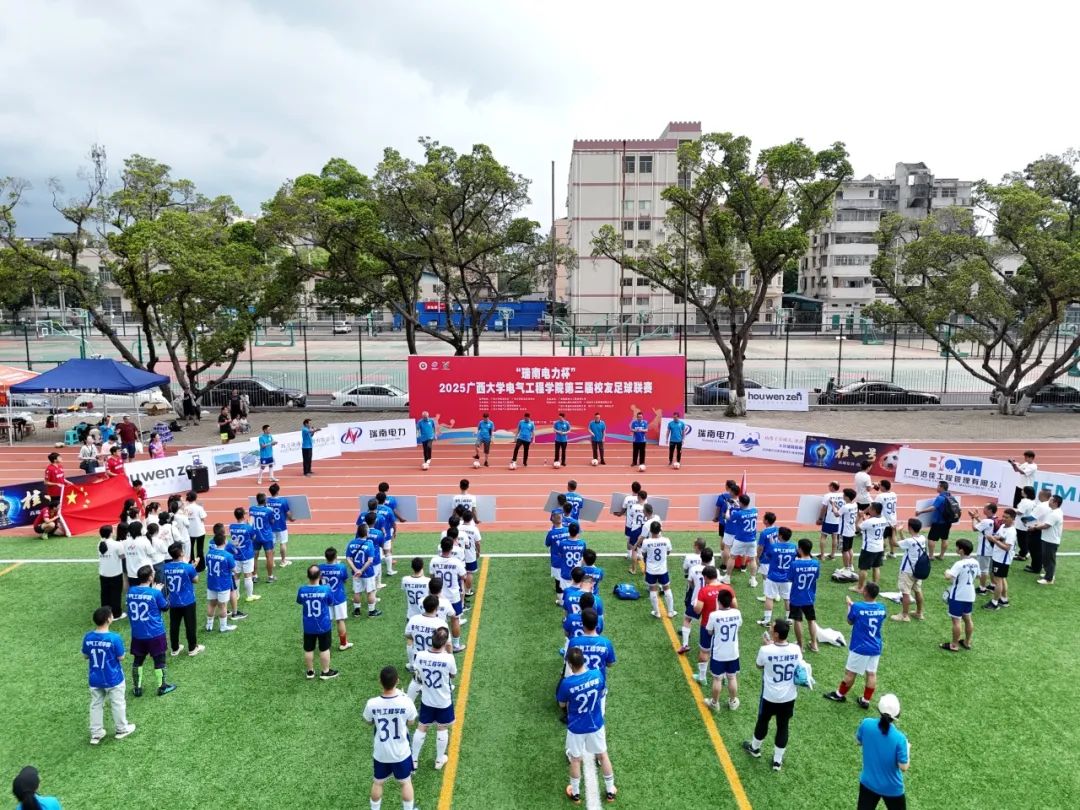 (本院讯 记者 欧阳家丰 杨子琪)5月17日下午,开云kaiyun登录入口第三届校友足球联赛开幕式在东体育场举行。自治区人大教科文卫委员会原副主任、广西大学原副校长钱健,校友办主任周海斌,广西大学足球队原领队、电气工程学院退休教师金力山,电气工程学院党委书记梁志坚,广西瑞南电力工程有限公司董事长于晖,校友足球协会副会长韦良,校友足球协会秘书长杜伟文等领导老师,赞助企业嘉宾和全体参赛队员齐聚一堂,共同见证这一充满激情的体育赛事。