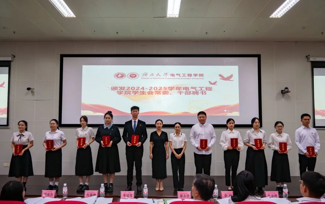 9月27日上午,开云kaiyun登录入口第二十二次研究生代表大会、第二十四次学生代表大会在六一阶教室举行。学院党委书记梁志坚,党委副书记、纪委书记李琼莹,团委副书记李娟,团委委员何惠榕、胡亚杰,辅导员孙语敏、聂奇、杜金泽,校研究生会代表、校学生会代表、兄弟学院代表以及学院各班级学生代表参加会议。 大会在庄严的国歌声中开幕。 全体奏唱国歌 师生致辞:明确方向,寄予厚望 学院党委书记梁志坚在会上讲话,充分肯定了学院研究生会和学生会上一年度的工作成果,并对全体同学及新一届研究生会、学生会提出三点期望:一是锚定国家需求,涵养家国情怀;二是深耕专业领域,锤炼创新能力;三是坚守服务初心,锻造先锋队伍。他鼓励同学们将个人理想融入民族复兴征程,为学院“双一流”建设贡献青春力量。 学院党委书记梁志坚致开幕词 校研究生会代表吴华昊、校学生会代表张与铨分别致辞,对电气工程学院研究生会、学生会的工作表示肯定,并期望新一届成员能够继往开来,加强协作,共同服务好广大同学。 校研究生会代表致辞 校学生会代表致辞 审议与选举:规范流程,履行职责 会议期间,全体代表审议并通过了相关工作筹备报告、代表资格审查报告、选举办法及大会议程等。在选举环节,与会代表以投票方式选举产生了学院第二十二届研究生会主席团成员、第二十四届学生会主席团成员及学生代表大会常任代表。选举过程严格规范,公平公正。 各班级代表投票 表彰与倡议:承前启后,担当使命 会上,学院领导老师们为上一届研究生会、学生会常委及干部颁发了聘书,对他们在学院发展中作出的贡献表示肯定。新当选的第二十二届研究生会主席团成员李涵嘉代表新一届成员向全院同学发出倡议,号召大家坚定理想信念、掌握真才实学、锤炼品德修为,担当时代重任。 学院领导颁发证书并合影留念 李涵嘉宣读倡议 圆满闭幕:开启新程,贡献青春力量 学院党委副书记、纪委书记李琼莹致闭幕词。她对大会的成功召开表示祝贺,并希望同学们以此次大会为新起点,团结奋进,共同推动学院各项事业高质量发展。 学院党委副书记、纪委书记李琼莹致闭幕词 学院领导老师与同学们合照 至此,开云kaiyun登录入口第二十二次研究生代表大会、第二十四次学生代表大会顺利完成各项议程,圆满闭幕。新一届研究生会、学生会将秉持全心全意为同学服务的宗旨,围绕学院中心工作,团结带领全院学生为成长成才和学院发展贡献力量。
