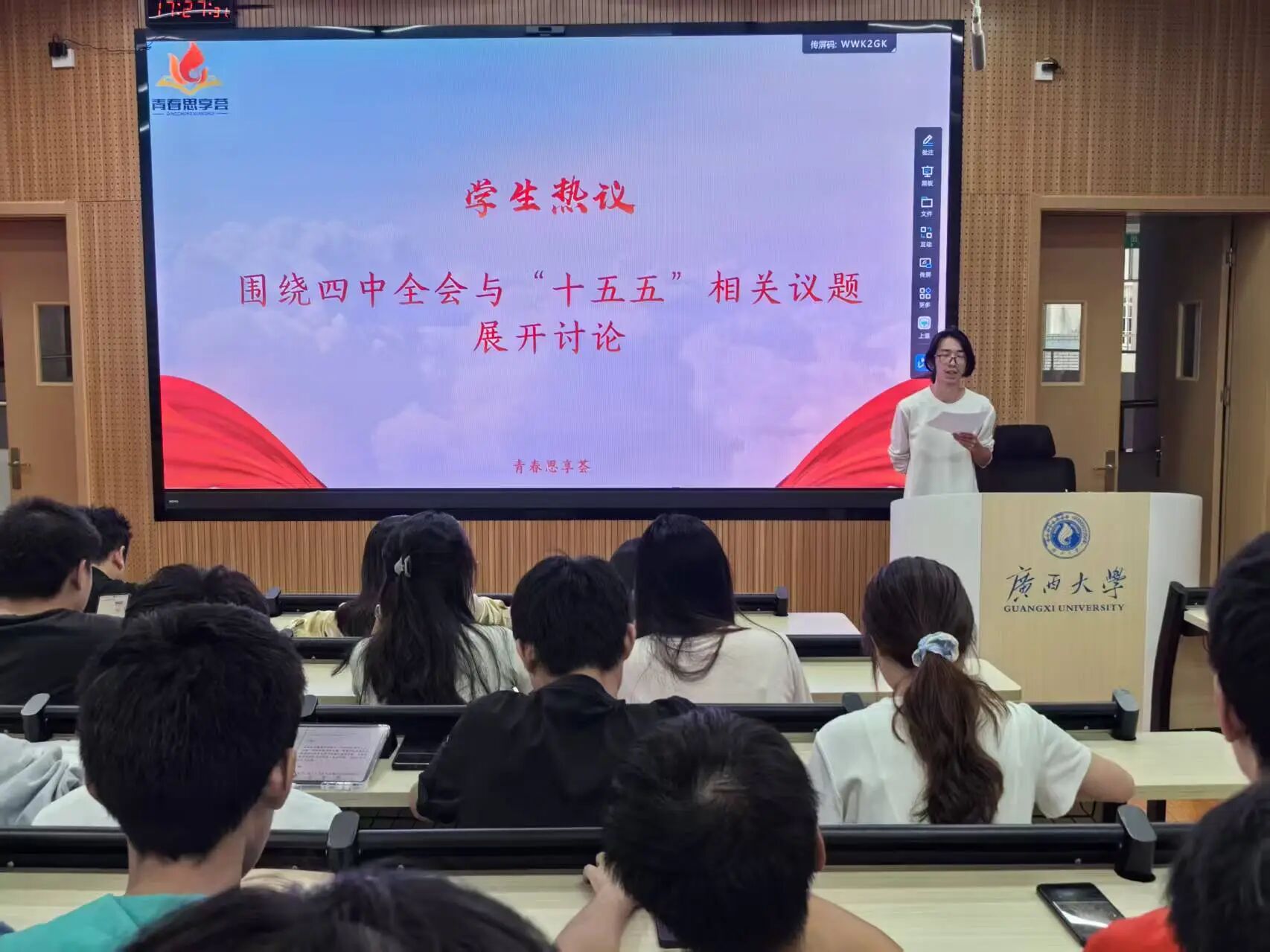 为深入学习宣传党的二十届四中全会精神,系统阐释国家“十五五”规划的核心内容,聚焦电力领域重点任务,进一步激发青年学子在能源转型中的责任与担当,10月28日,学院团委、学生会在10A-204教室开展“解码‘十五五’电力密码:二十届四中全会精神指引下的青春担当”主题青春思享荟。学院团委委员何惠榕、胡亚杰、李亚男以及本科生代表共同参会。
