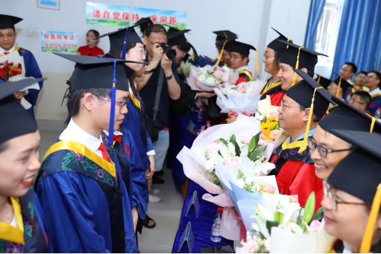 学位授予仪式开始前,毕业生们向导师献上鲜花,表达对恩师培育的感谢与敬意。